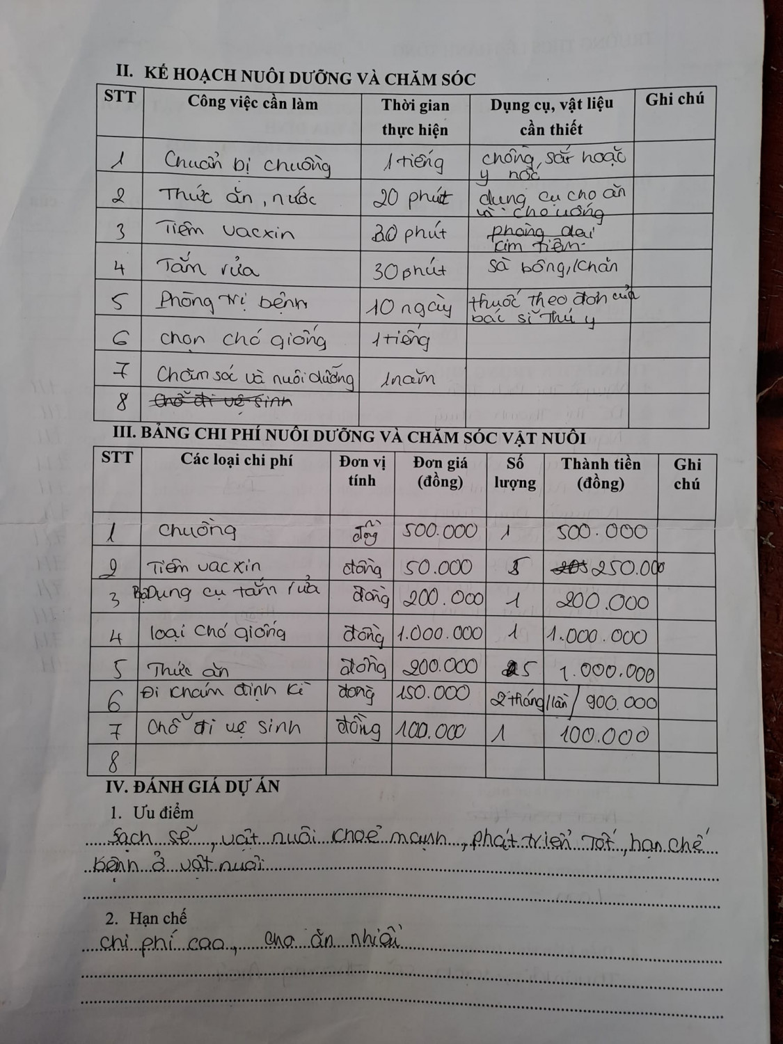 "Dự án" nuôi vật nuôi trong nhà môn Công nghệ 7