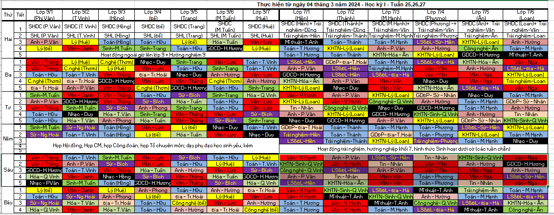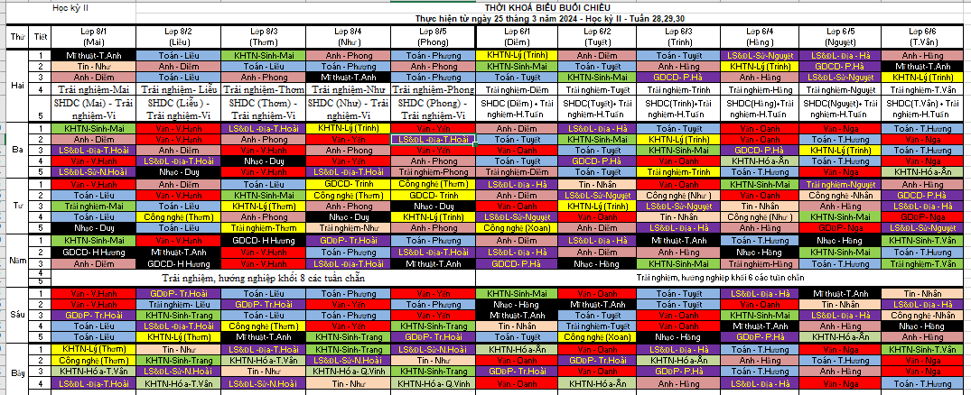 Thời khóa biểu khối 6,7,8,9 tuần 28,29,30 năm học 2023-2024