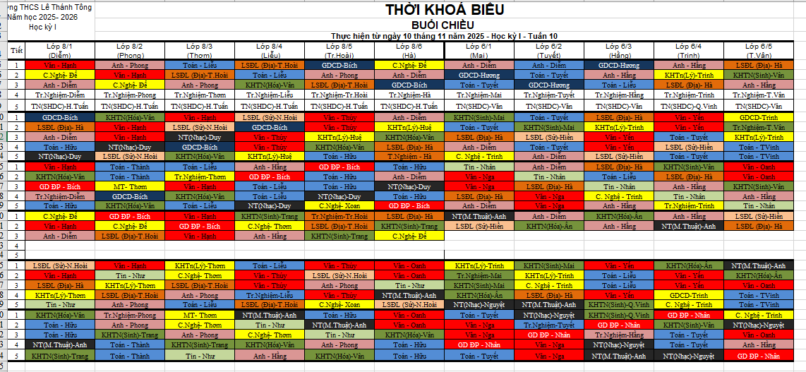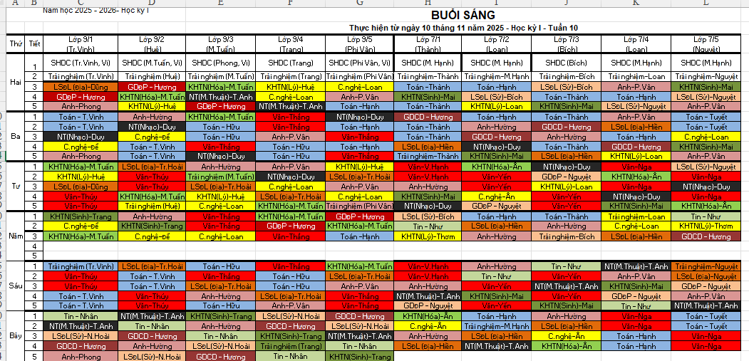 Thời khóa biểu tuần 10 - HKI - Năm học 2025-2026 (Áp dụng từ ngày 10/11/2025)