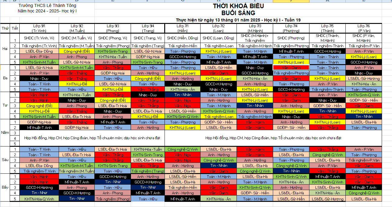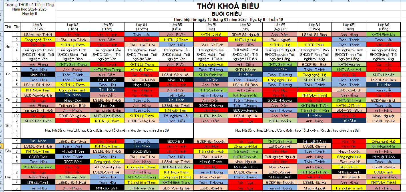 Thời khóa biểu tuần 19 - HKII - năm học 2024-2025