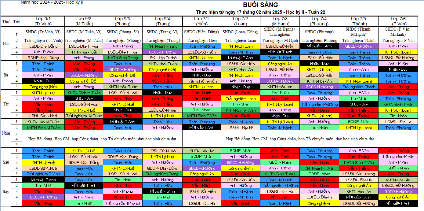 Thời khóa biểu tuần 22 - HKII NH: 2024-2025 (Áp dụng từ ngày 17.02.2025)
