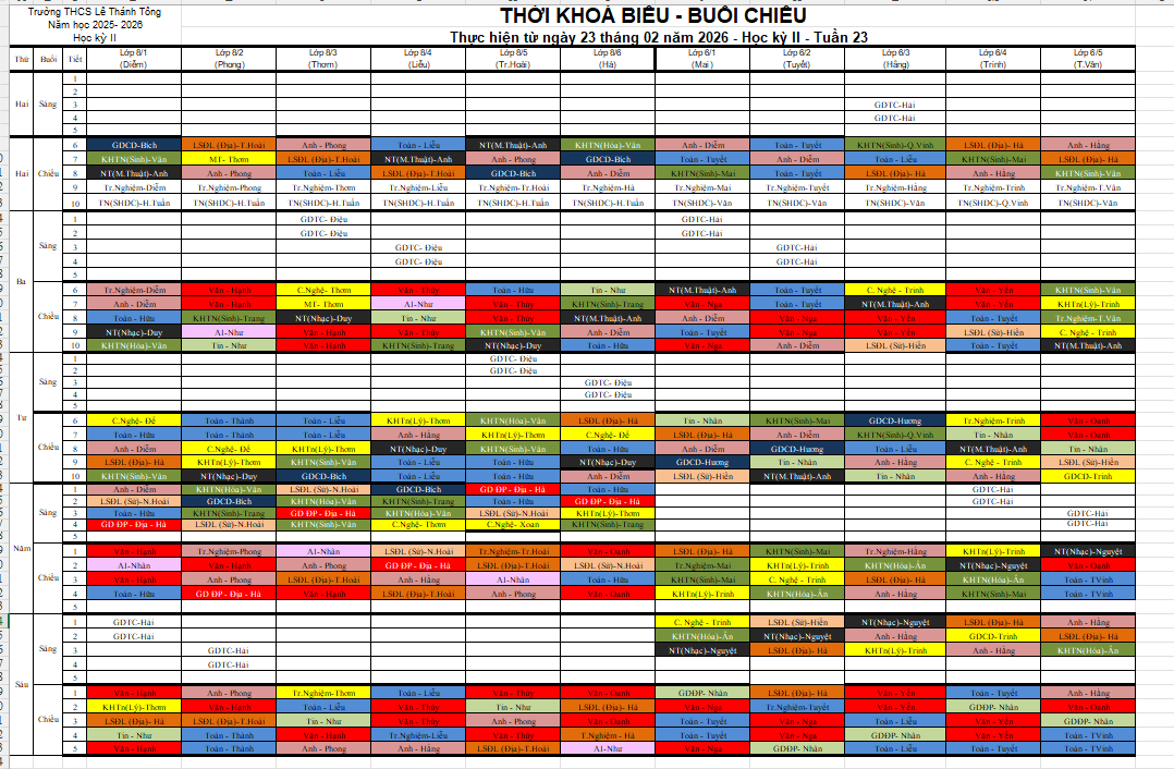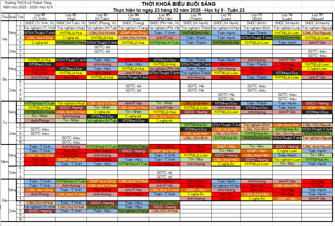 Thời khóa biểu tuần 23 - HKII năm học 2025-2026 (áp dụng từ ngày 23/01/2026)
