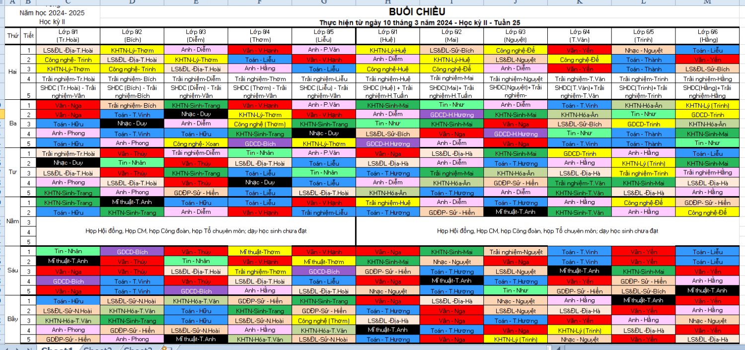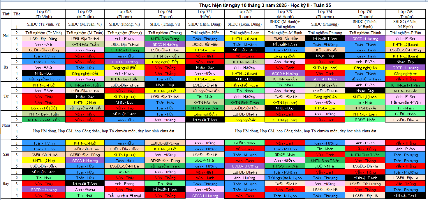 Thời khóa biểu tuần 25 - HKII - năm học 2024-2025