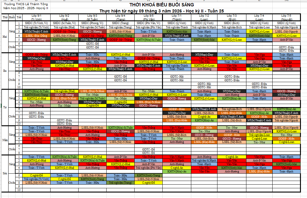 Thời khóa biểu tuần 28 - HKII - Năm học 2025-2026 (Áp dụng từ ngày 30.3.2026)