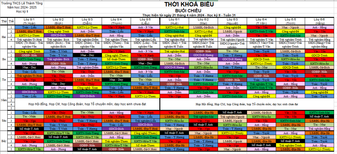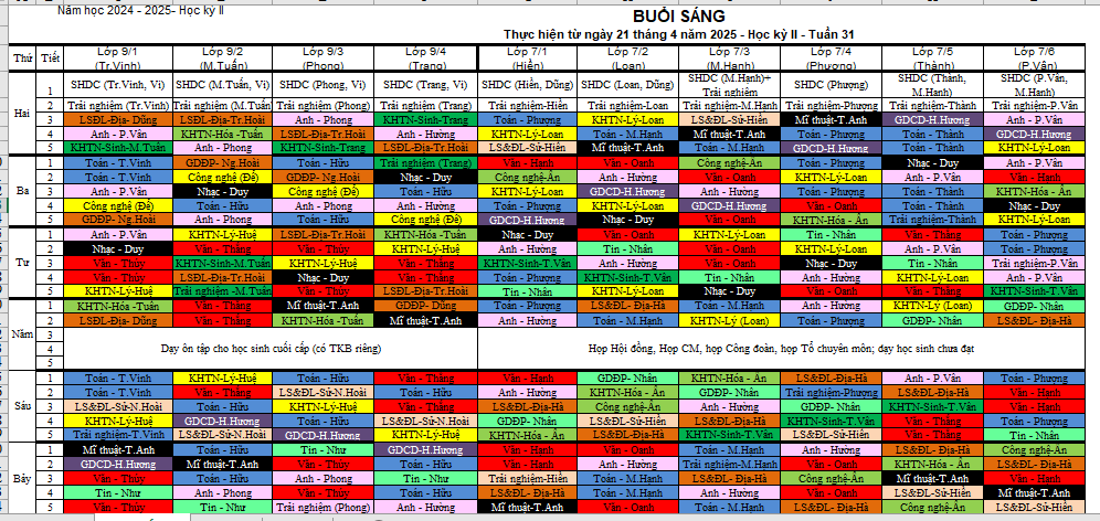 Thời khóa biểu tuần 31 - HKII - Năm học 2024-2025