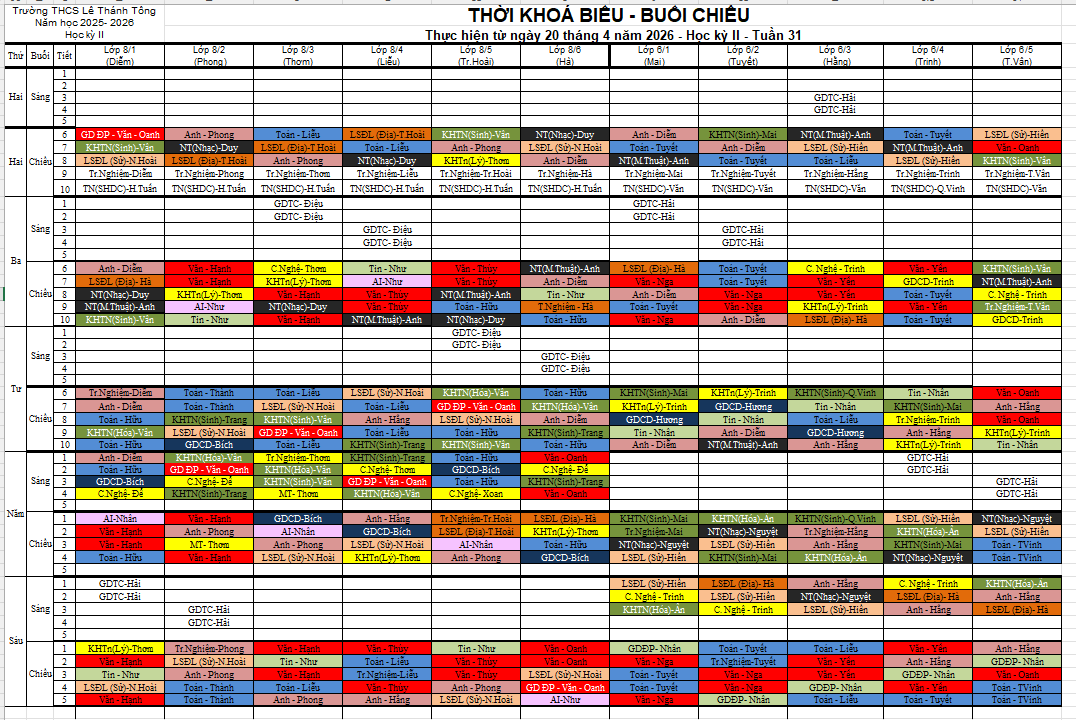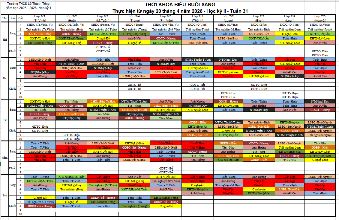 Thời khóa biểu tuần 28 - HKII - Năm học 2025-2026 (Áp dụng từ ngày 30.3.2026)