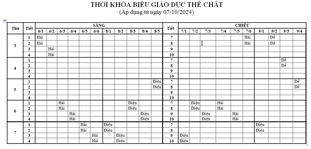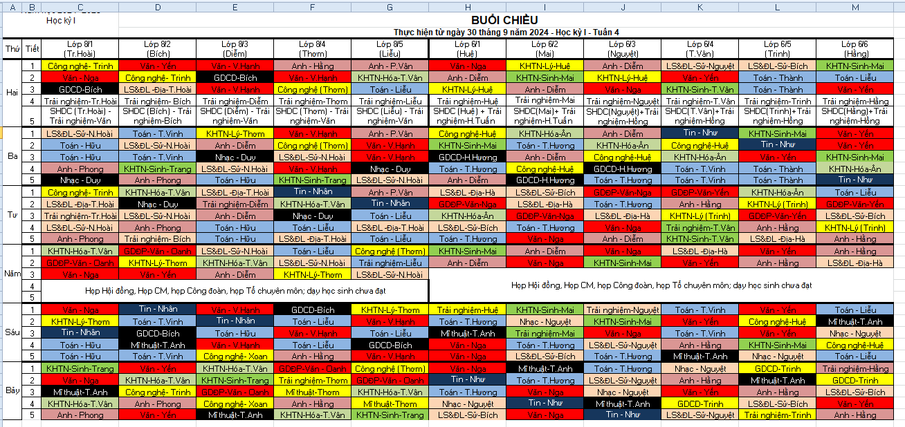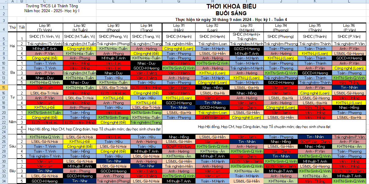 Thời khóa biểu tuần 4 (Áp dụng từ ngày 30.9.2024)