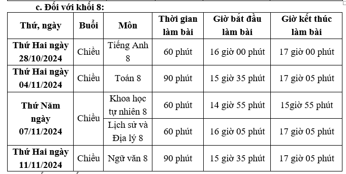 Thông báo về Lịch kiểm tra cuối học kỳ I năm học 2023-2024