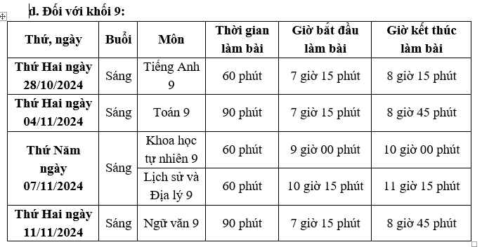 Thông báo lịch kiểm tra cuối học kỳ II - Năm học 2023-2024